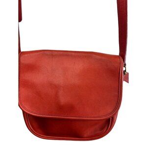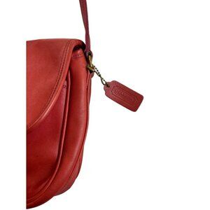 Coach Vtg Red Leather Saddle Bag, Crossbody Legacy Flap Closure