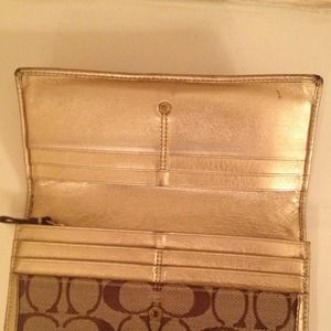 Authentic Coach Wallet. Tan and Gold.Matches purse I'm selling. Willing to bundle. Excellent condition!!