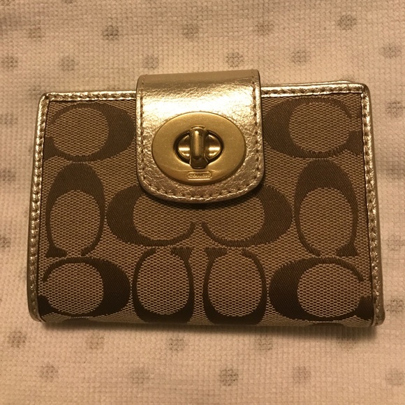 Beautiful Coach Authentic Wallet. Light Brown C pattern with gold clasp and gold interior.