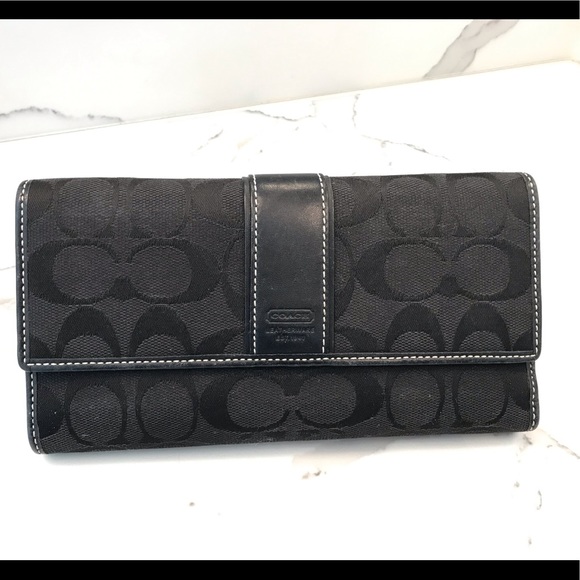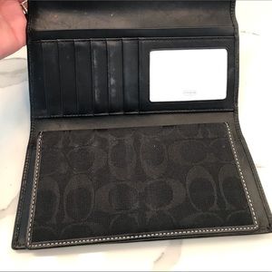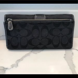 Black Coach wallet trip-fold with space for check book, change, & credit cards.