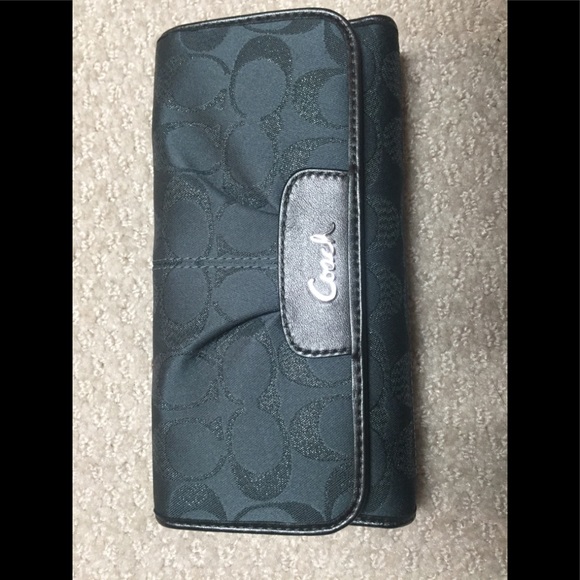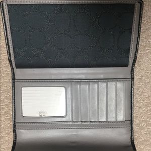Blue/Greyish color. Used only a few times. Has removable checkbook sleeve. Outside zipper for coins. Matching purse in separate listing.