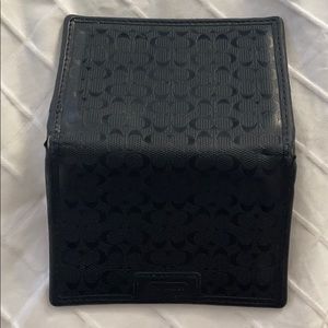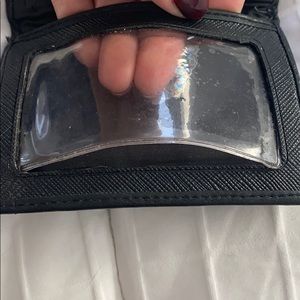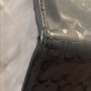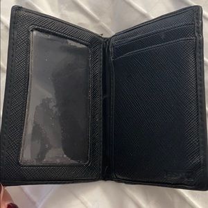 Black canvas, ID pocket partially unglued from canvas, one small tear on outside fold.