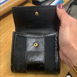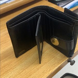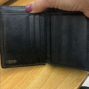 Black coach wallet. 10 credit card slots, Id slot, coin pouch on back. Very roomy.