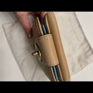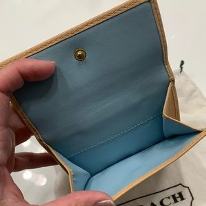 Small Coach Wallet. Gently worn with minor flaws shown in pictures. Light blue interior.