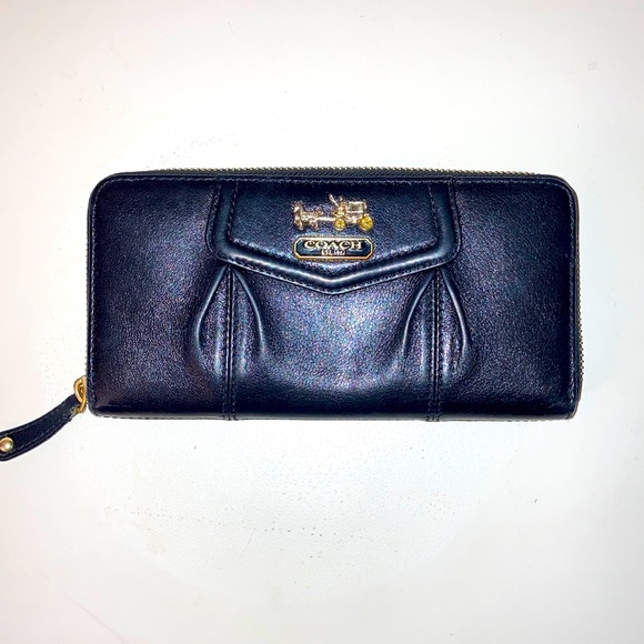 Coach leather Madison wallet. Includes full zipper, card slots and center zipper pocket. Great condition.