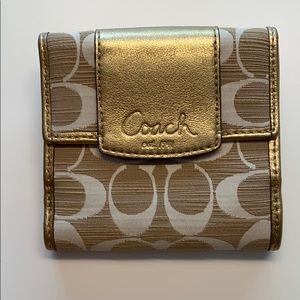 Gold, cream and tan coach wallet. Excellent condition. Used only a handful of times.