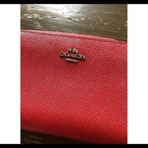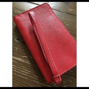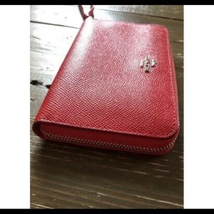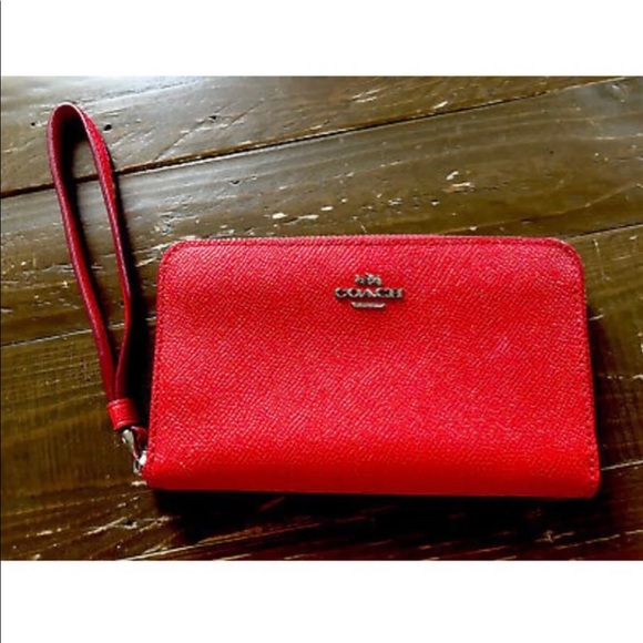 COACH New York RED Crossgrain Leather Zip WRISTLET WALLET Cards Phone F58053