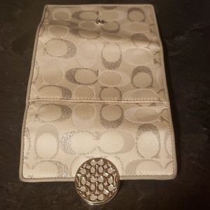 Beautiful white and silver Coach wallet. Very gently used for 3 weeks, still looks new. Several credit card slots and plenty of room for cash. Make me an offer.