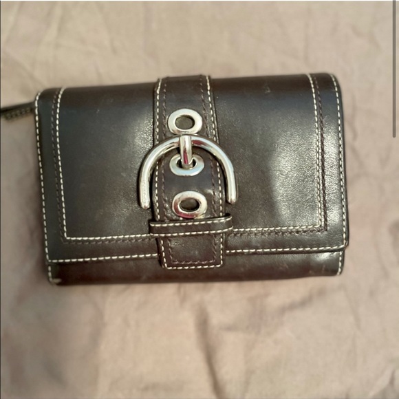 Brown button snap Coach wallet.