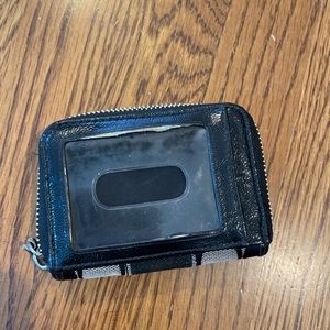 Coach wallet, black and gray, features the Coach logo print, well loved (as seen in photos-please note the zipper tag is missing)