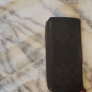 Coach long zip around black wallet