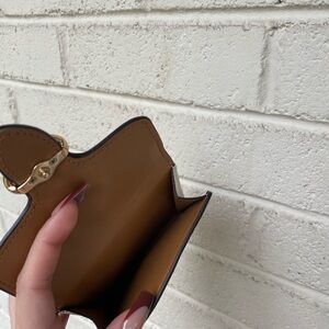 Super cute & spacious, the front opens up to a small pocket where you can fit loose change. The main compartment fits credit cards and cash. Very clean and only used a handful of times. Great style for this winter!