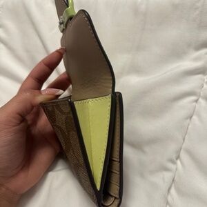 Classic brown Coach monogram with a pop of lime green buckle detail. Compact and stylish, perfect for everyday use. Only used for a few days.