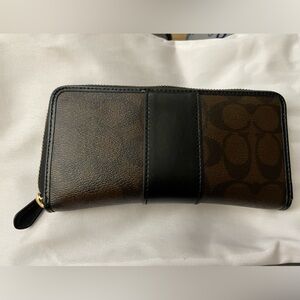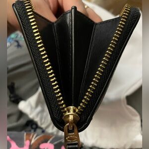 Gently used. Great wallet that can fit a lot. There are 12 card holders and coin pouch is large.
