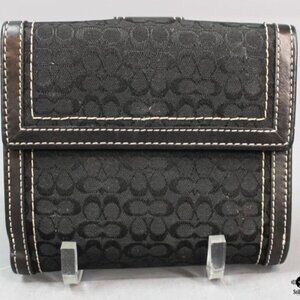 Coach Wallet Black Gray Signature C Foldout trifold Wallet Buckle 5" w 4" h