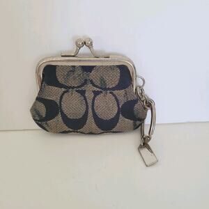 Coach Wallet Key Coin Case Holder Navy Blue Canvas Leather Mini Small Kisslock