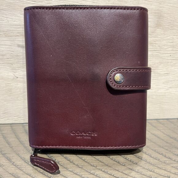 Coach Wallet Leather Organizer Trifold bilfold Cardinal Red Dark Burgundy F34868