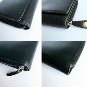 Coach Wallet Long Zip Around Trifold Snap Black Leather Vintage