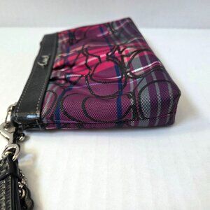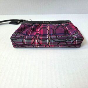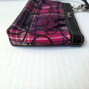Coach Wallet Pink Purple Signature C Tartan Plaid Pleated Wristlet Preppy