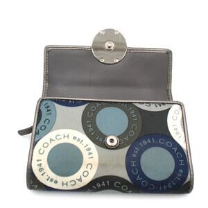 Coach Wallet Y2K Trifold Gray Blue Circle Logo Fabric Silver Medallion Snap