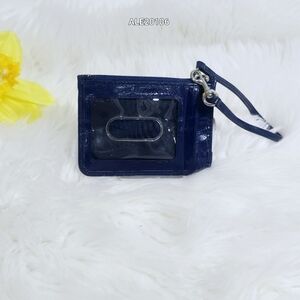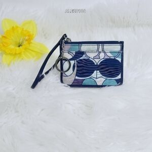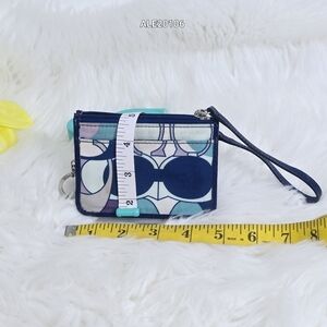 Coach Wallet/ID Holder Blue and White Wristlet with Keychain.