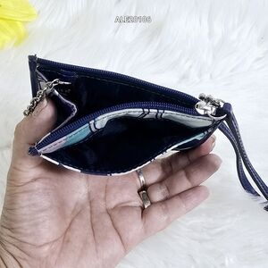 Coach Wallet/ID Holder Blue and White Wristlet with Keychain