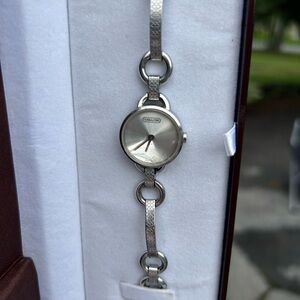 Beautiful coach watch. It needs a new battery and the face is cracked. However, it is otherwise is great shape. It was purchased for $300.