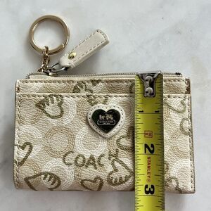 Coach Waverly Hearts Mini Card Wallet in Light Cream Khaki & Gold