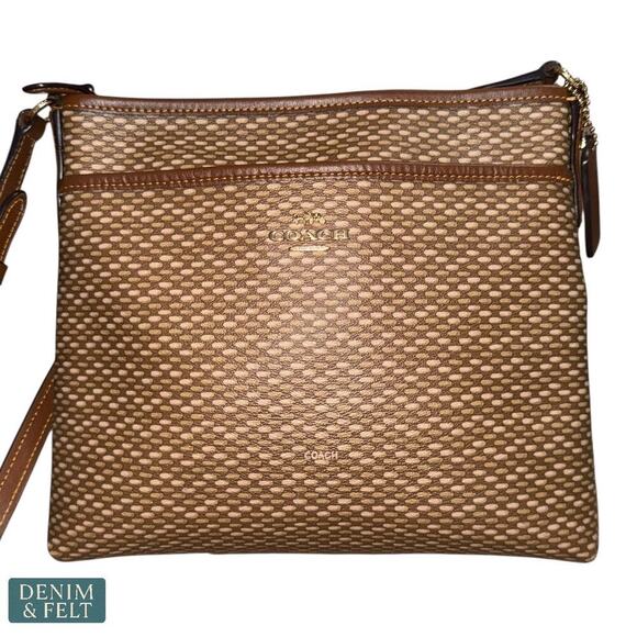 Coach Weaved Brown Embossed Leather Crossbody Shoulder Bag Adjustable Strap