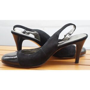 Coach Weiling Slingbacks Black Patent Leather And Suede 3” Heel Round Toe 8B