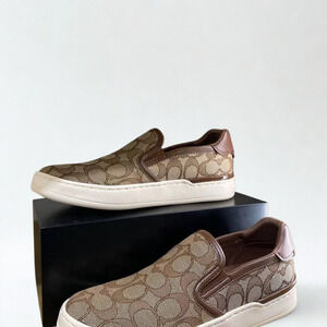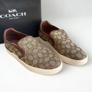 Coach Wells Slip On Sneakers C4393 Sig PVC Khaki Saddle Women’s 9B NIB