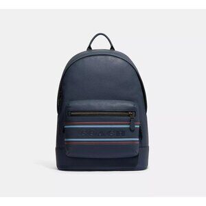 Coach West Backpack With Coach Stripe Gunmetal Denim Multi NEW