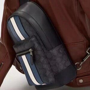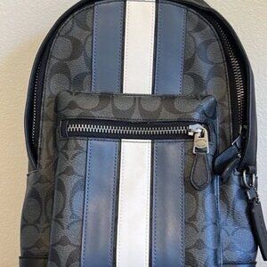 Coach West Pack Bag Sig Varsity Stripe Blue NWT Signature Charcoal