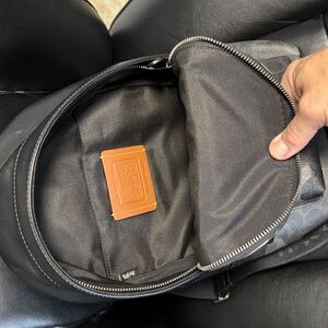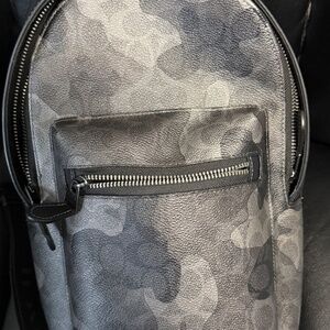 The West Pack in Signature Camo Print is crafted of Signature coated canvas and smooth calf leather. This designer camo sling bag is both durable and style-boosting for any look on the go. The convenient outside zip pocket keeps your top essentials handy, while the main compartment holds your other items with ease. This men's canvas sling bag also features a unique print that sets it apart from the rest, making it a standout in your bag collection.