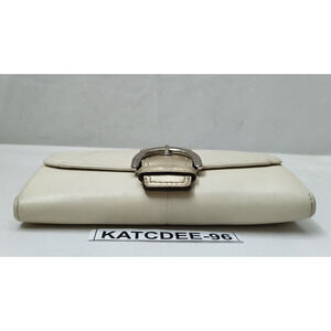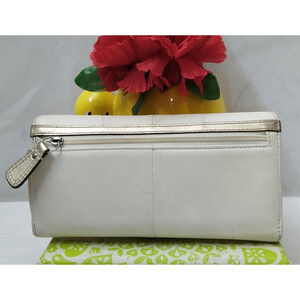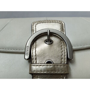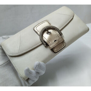 Coach White Chalk Leather Buckle Credit Card Trifold Wallet