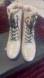 Elegant white boots with cozy lining. Features sturdy black heel. Perfect for stylish outings.