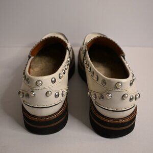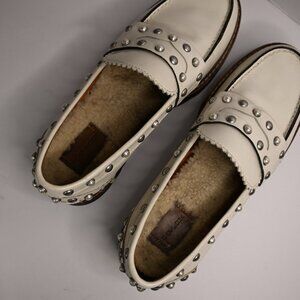 White leather loafers with studded rivet details from Coach. Elevates every outfit. Fits a size 7, 7.5