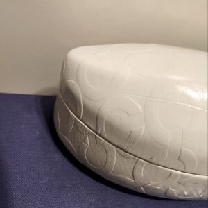 Coach White Leather Hard Clam Shell Domed Sunglasses Case "C" Embossed Logo
