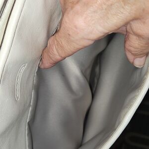 This elegant tote bag features a stylish white and gray design, perfect for any occasion. Its spacious interior and chic look make it a must-have accessory.
