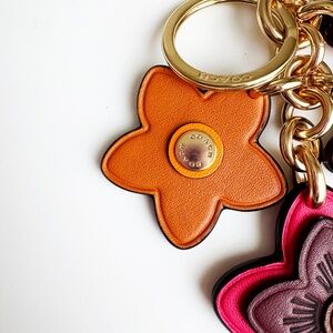 Coach Wildflower Mix bag charm key ring, from their 2021 collection. The colorful flowers are made from leather and the hardware is gold metal - perfect for holding your keys - or for styling on your favorite Coach bag!