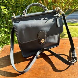 Classic, structured Willis bag with top handle and detachable adjustable strap. Glove-tanned full-grain cowhide leather with signature turn-lock closure and original Coach hang tag.