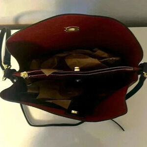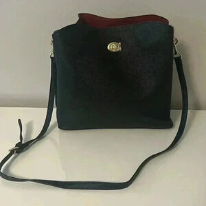 Coach Willow Bag Black with Wine Interior, small wrinkles in the leathers on the back.