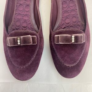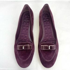 Coach Wine Suede Lidia Loafer Shoes Women’s Size 7.5 Flats Velvet Bow Coquette