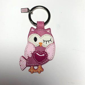Coach Winking Love Owl Pink Leather Key Ring Key Chain KeyFob Bag Charm 93095