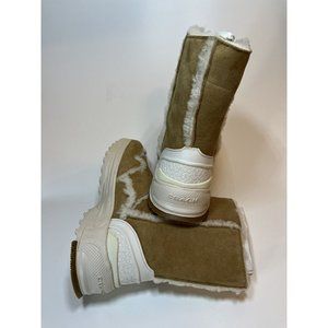 Coach Winter Boots Portia Genuine Shearling Lined Leather Boot CamelNatural Sz 7