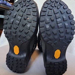You are viewing a used pair of black, Coach, winter and snow boots. These boots have a Vibram sole which is in excellent condition. Very minimal use on the sole.