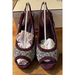 Coach Womans 7.5 Lorilee Burgandy/Black/White Tweed Sling Back Pump A3145 NEW