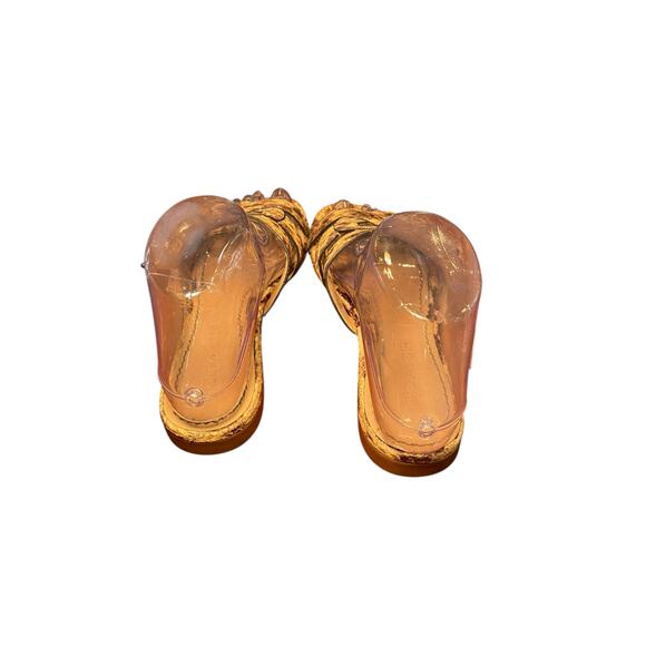 Coach Women 6 Kennedy Leather Snakeskin Slide Sandals Brown & Silver Monogram C