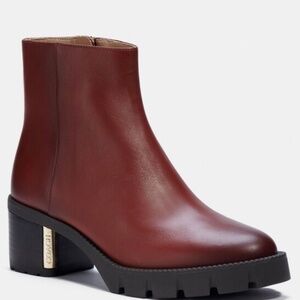 NIB Coach Women Chrissy Boots Size 6 In burnish Brown color With black bottom Heel is approximately 2” Great style and comfort Made from leather