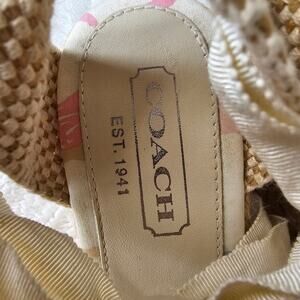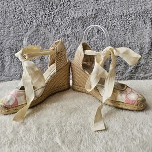 Coach Women Mindy Scribble Print Espadrille Wedge Heels Size 7M Beige Ankle Tie